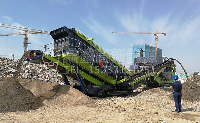 陜西西安履帶式建筑垃圾處理設(shè)備運(yùn)行現(xiàn)場(chǎng)