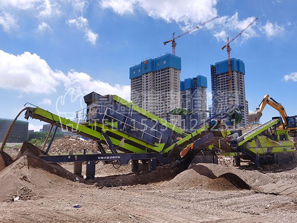 福建廈門(mén)輪胎式建筑垃圾處理設(shè)備運(yùn)行現(xiàn)場(chǎng)